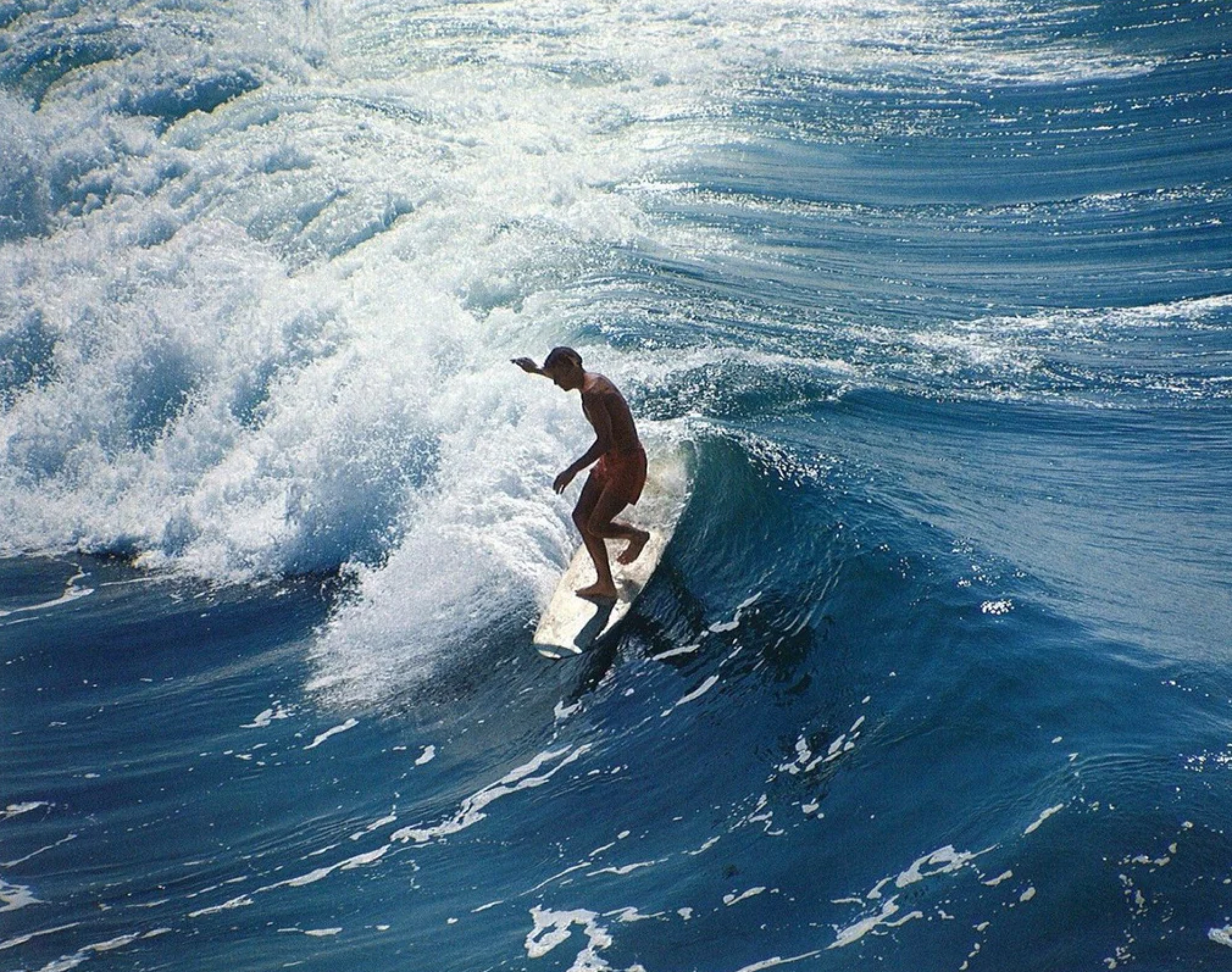 He stands in the soft sand at water’s edge, toes sinking in, and surveys the open expanse of horizon and swells. There is rhythm here, like a beating heart, that calls him … wave after wave, no two exactly alike and he will move forward, driving his board into a glide through foam and a thousand blues of ocean swirl. Then there will be the determination of readiness, of which one he’ll choose to be his warmup wave, his first rush, his moment of being one with the ocean, his launch into a fine day. It is sport and lifestyle, whether on the water or on land, and it never really begins and never really ends. The beauty and love of being out there, sun and ocean, gold on blue, and being infused with an energy so spiritual just to be there is enough. It is beyond words. A surfer’s trajectory across the face of a wave is his musical score, his living story, his signature and art in motion.