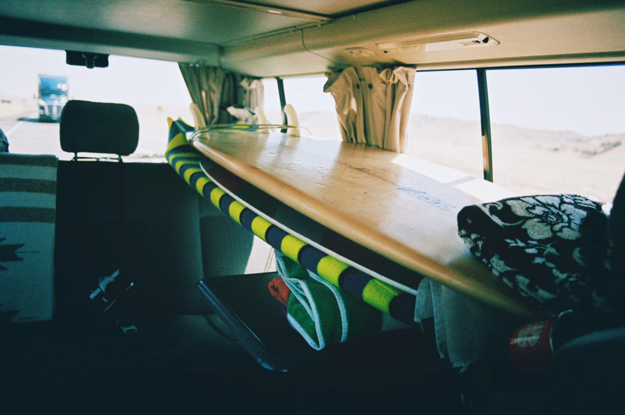A hundred miles to the west, as the ocean fades from blue to black, a surfer returns through a coastal meadow to his van. The surf continues to roll in as the last rays of sunlight spark the inky night sky. Warm air from the valley swings west through the canyons, replacing cool, salty air with the scent of coastal live oak. The van backs out from the sandstone ridge with the sound of crunching dirt under its tires. Cold and wet, the surfer reflects through his rear-view mirror on an afternoon well-spent. He dreams of days like this and smiles as the anticipation of another epic day of surf lies ahead.